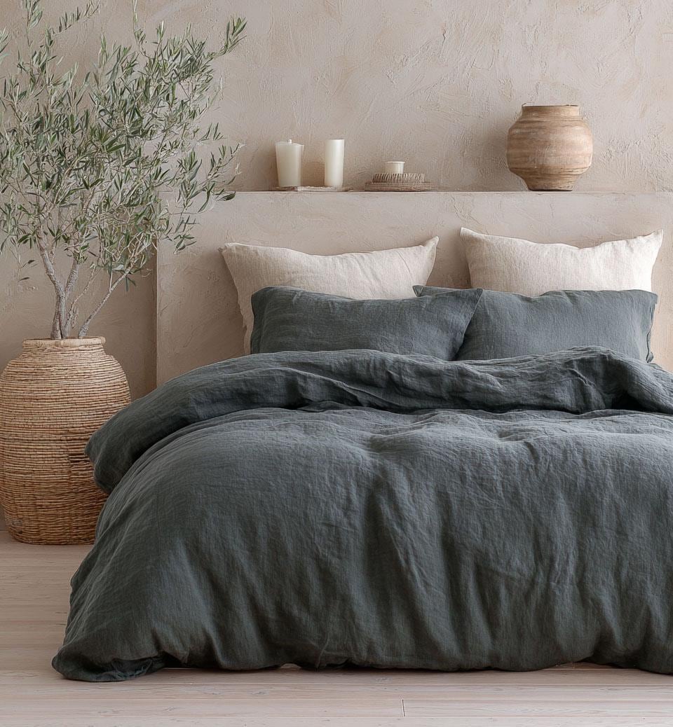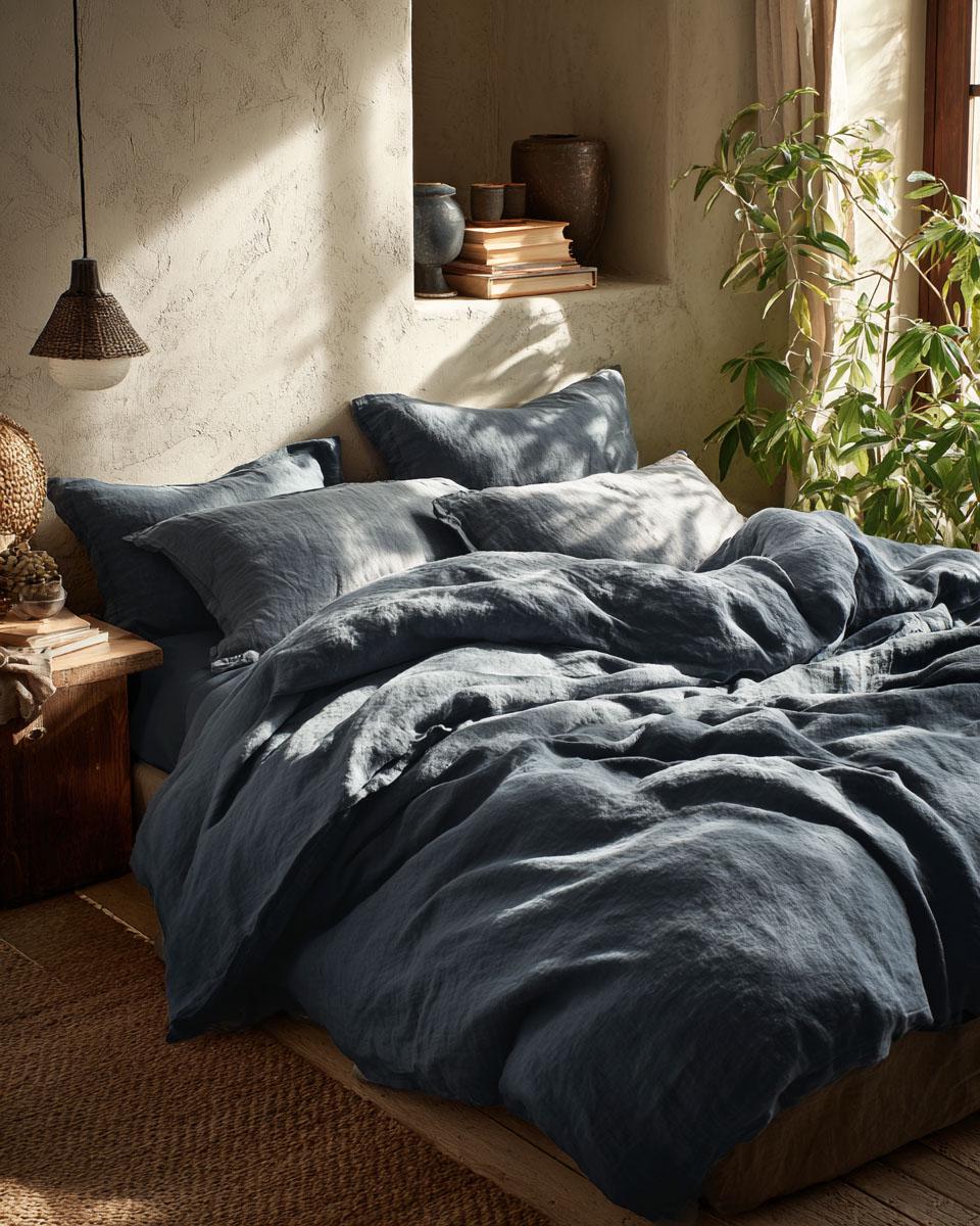The NOCTURNE collection features a dark blue-gray color, pre-washed for comfort and a relaxed, slightly rumpled look. Linen is temperature-regulating, making this duvet cover ideal for all seasons.