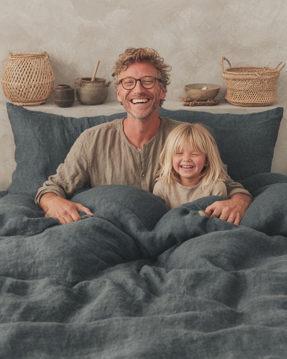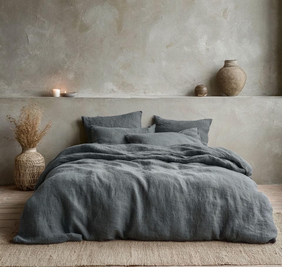 High-quality stone washed linen duvet cover, handmade in Lithuania from 100% pure European linen. This breathable and durable linen bedding is perfect for a natural, minimalist, or modern bedroom interior.