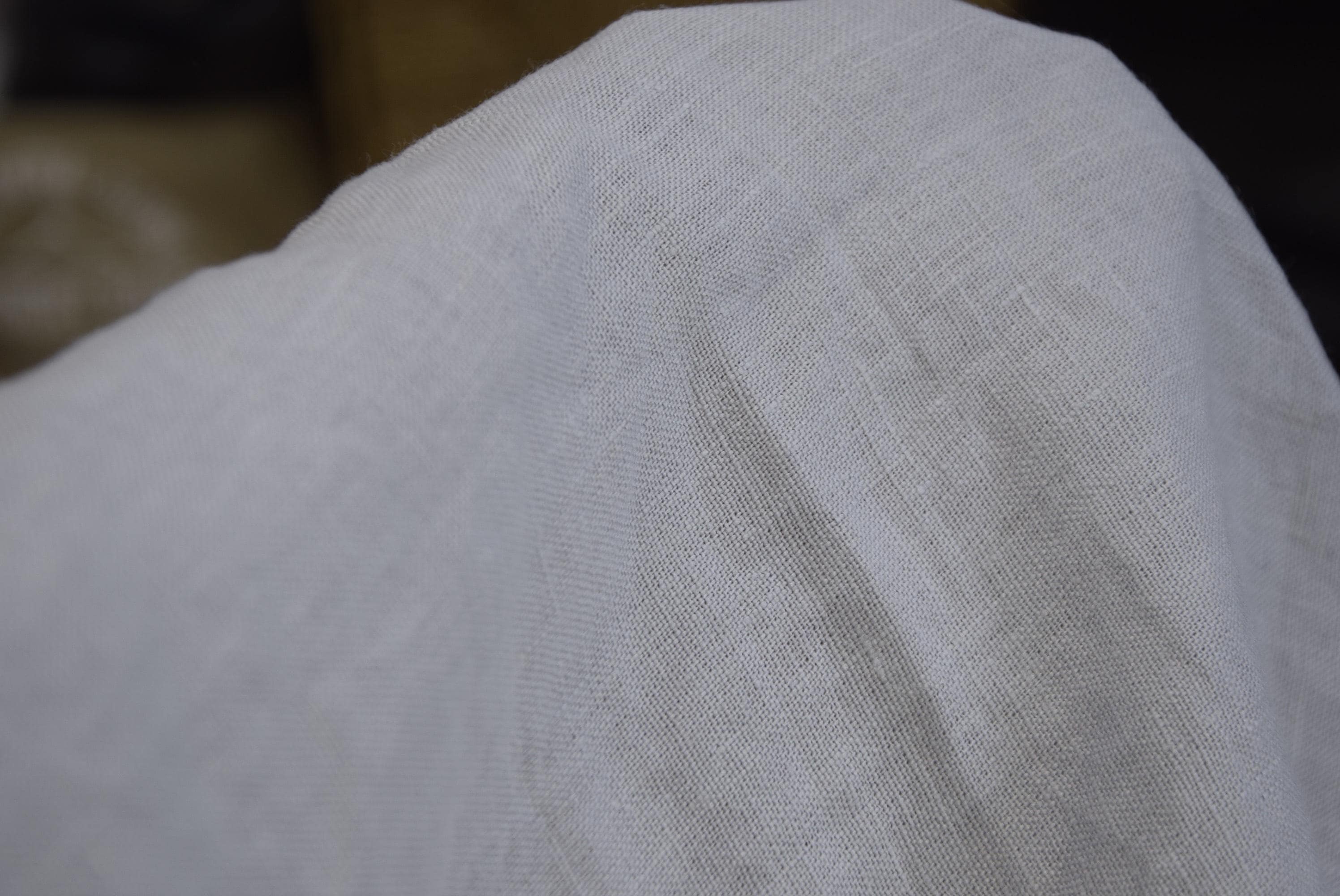 Pure linen fabric Gloria. A medium-weight (200 GSM) densely woven washed linen with soft hand feel and natural texture — ideal for structured garments, everyday wear, and durable home textiles.