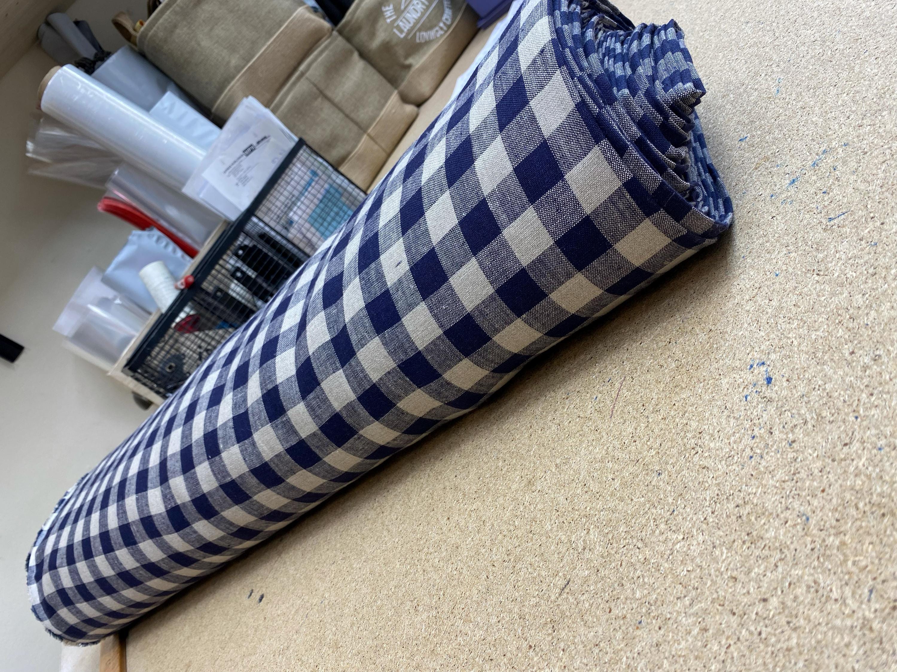 23.80 METERS OF PURE LINEN FABRIC STELLA, blue checks.