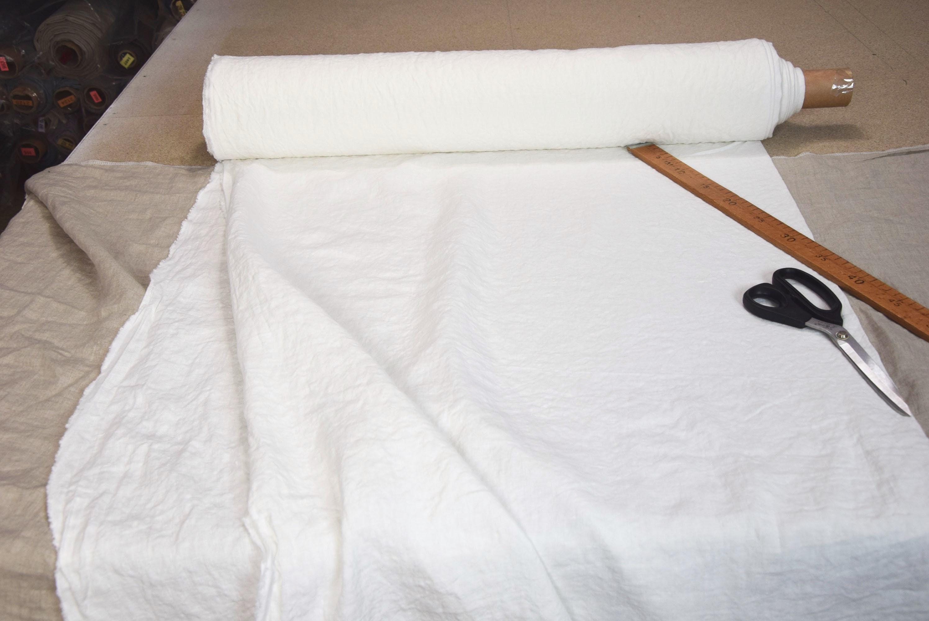 Fabric Augusta is a lightweight (turns to mid-weight side), densely tightly woven 100% linen with a smooth, naturally crinkled finish. It’s durable, breathable, and naturally hypoallergenic—perfect for everyday use.